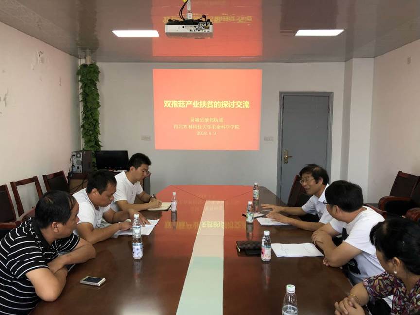为落实国家精准扶贫政策,推动当地双孢菇产业园区建设,近日,永利官网2018届优秀毕业生郭孟凯与渭南市蒲城县紫荆街道办事处相关人员一行与学院专家交流座谈,学习双孢菇相关生产技术。