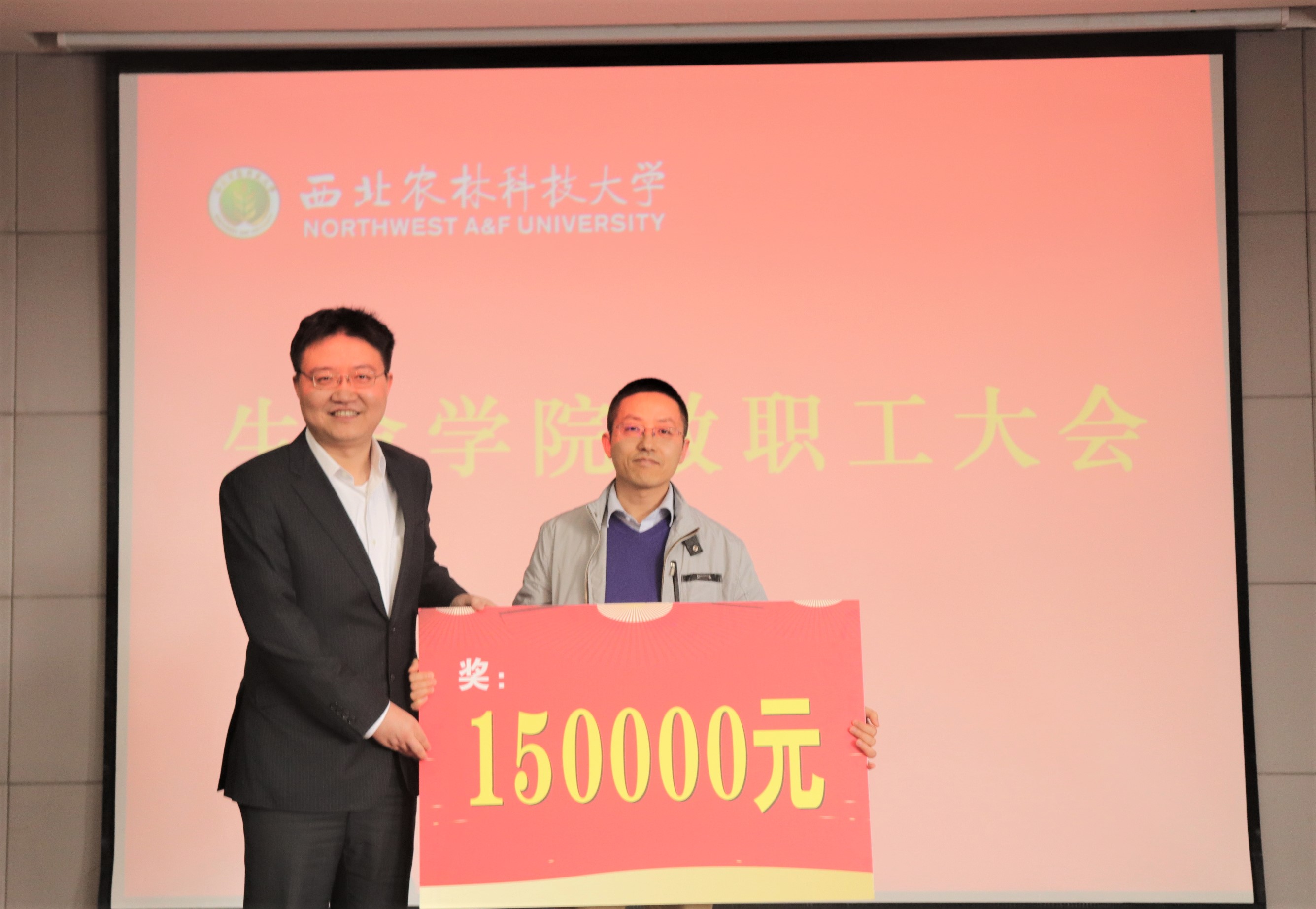 郁飞院长为张宏昌副教授颁发支持科研经费奖牌